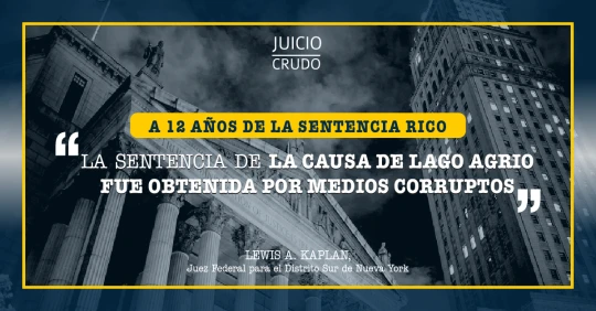 La decisión, tras un juicio de siete semanas bajo las leyes RICO contra el crimen organizado, fue dictada por el juez Lewis A. Kaplan en Nueva York. El juez Kaplan confirmó las prácticas corruptas usadas por los abogados y representantes de los demandantes de Lago Agrio para obtener la sentencia de $9.500 millones contra Chevron.